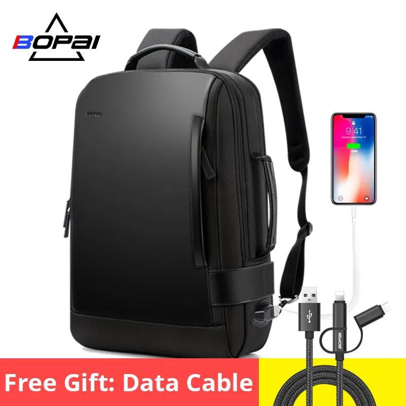 New BOPAI Brand Enlarge Backpack USB External Charge 15.6 Inch Laptop Backpack Shoulders Men Anti-theft