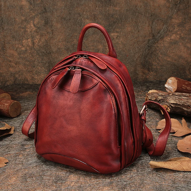 New Travel Outdoor Backpack Natural Leather Women's Backpack Shoulder Bags Handmade Leather Knapsack Fe