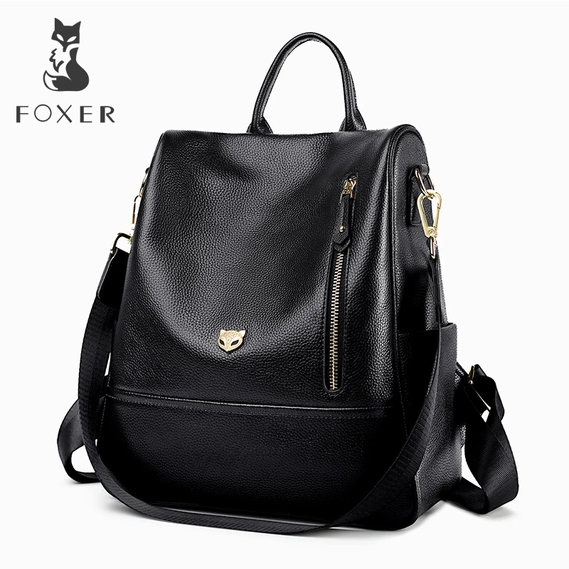 Home » backpack , hot product , travel » Limited FOXER Brand Student Softback Backpack Women Genuine Leather Solid Travel Bags Female Cow Leather Fa