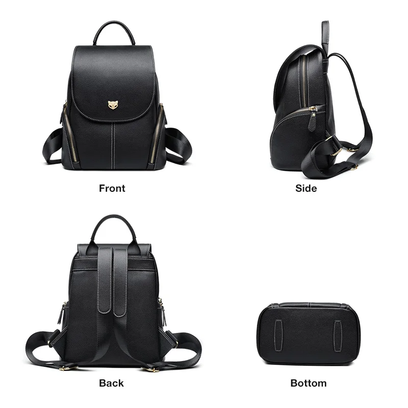 Home » backpack , hot product , travel » Limited FOXER Cowhide Genuine Leather Girl's School Bag Korean Simple Black Women Backpack Large Capacity L