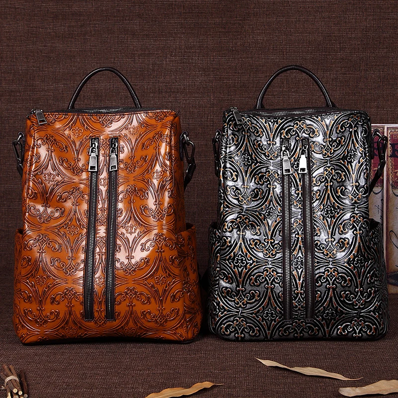 Special Product Women Embossed Rucksack First Layer Cowhide Knapsack Girls School Bag Female Daypack Travel Genuine