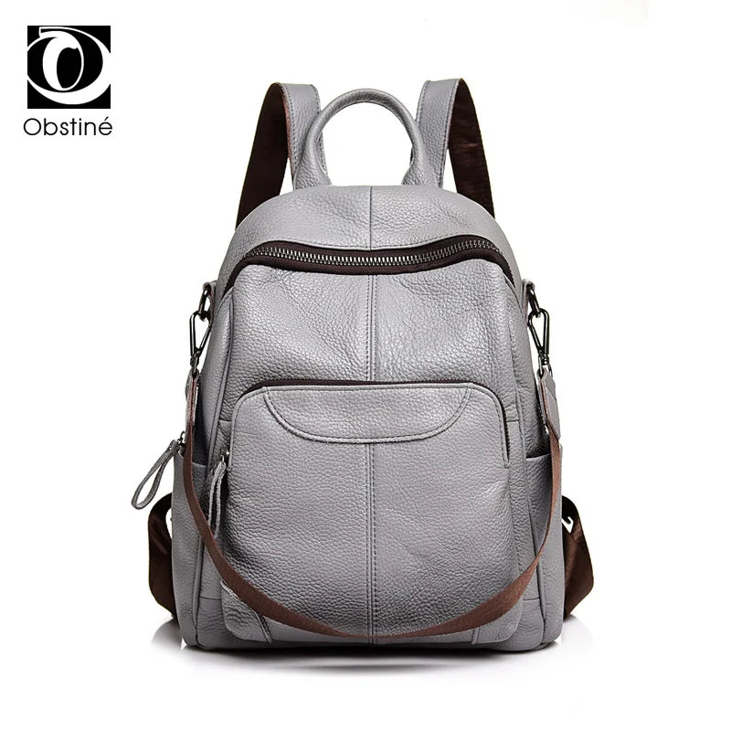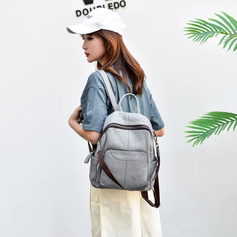 Buy luxury genuine leather backpack women casual cow leather backpacks for travel gray ladies shoulder