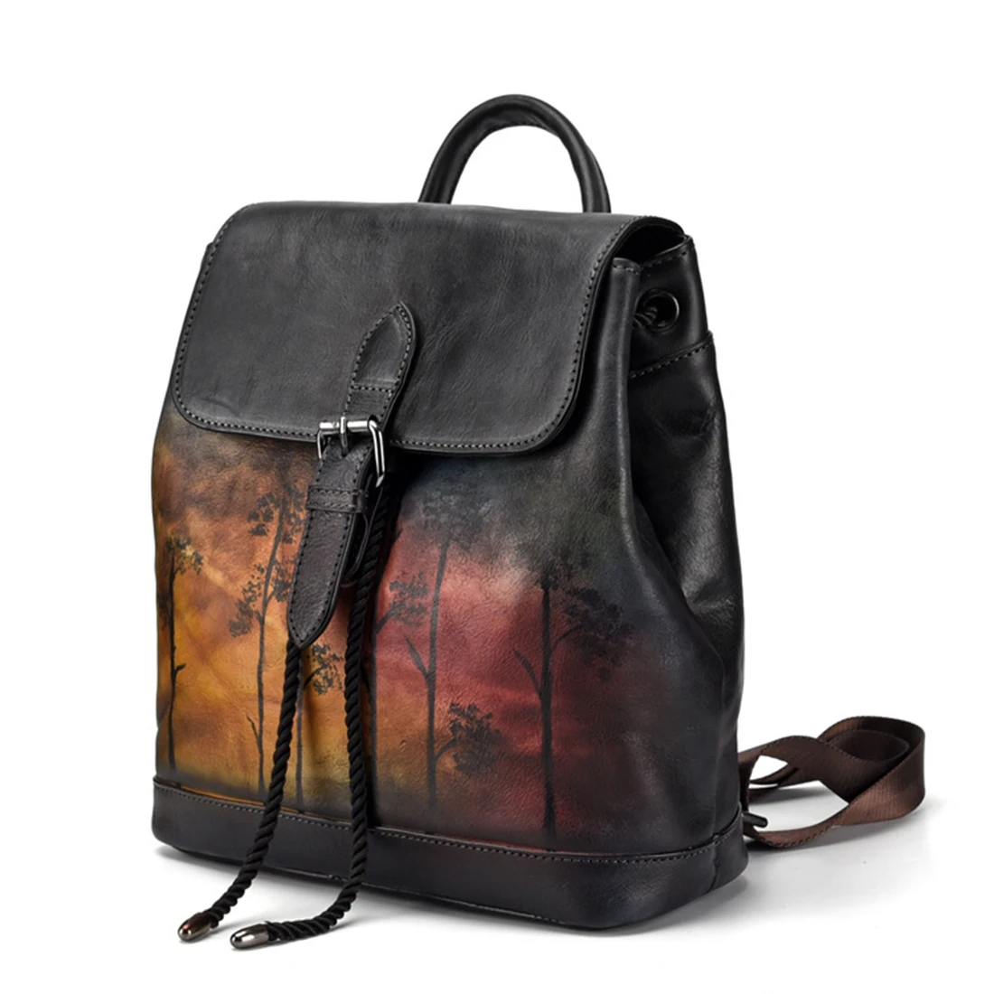 Buy Natural Skin Rucksack Knapsack Girls Daypack Travel Bag Vintage Brush Color Bags High Quality Genui