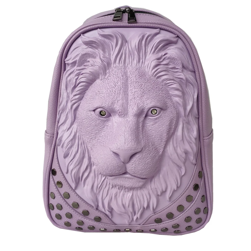 Discount 3D Embossed Lion Head Studded Rivet Gother Women Backpack Leather Soft Travel punk rock Gilrs Backp