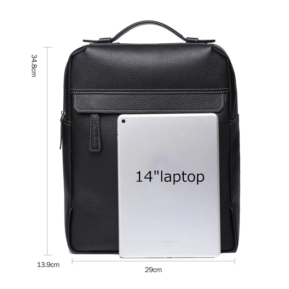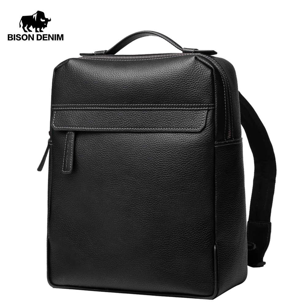 Special BISON DENIM Men's Backpacks Cowskin Large 14 inches Laptop Backpacks For Male Leather Travel Bags F