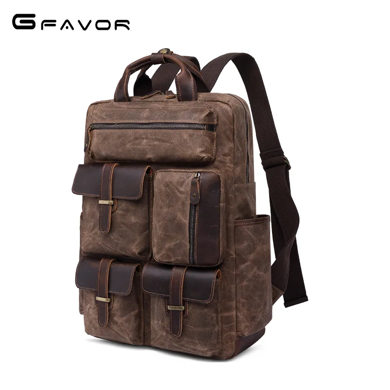Hot Product SOURCE Oil Wax Canvas Bag Backpack Men's Travel Retro Canvas Bag Large Capacity Outdoor Men's Bag M