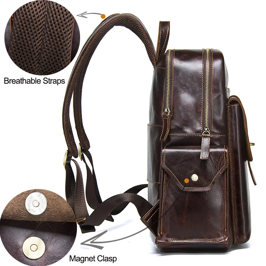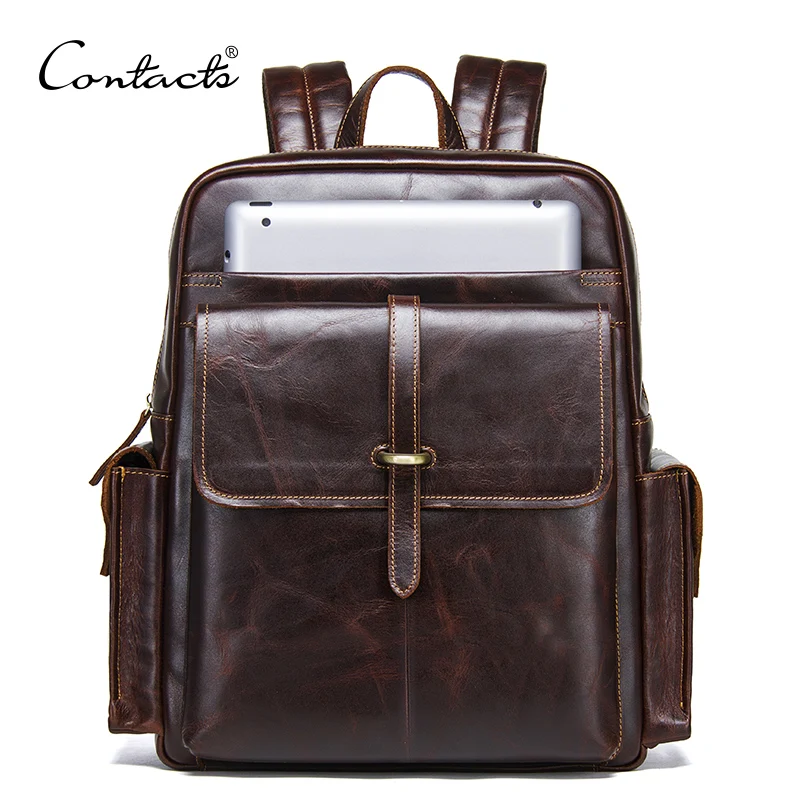 » Hot Product CONTACT'S 100% cowhide leather men's backpack for 13 inch laptop genuine leather bagpack casual mal