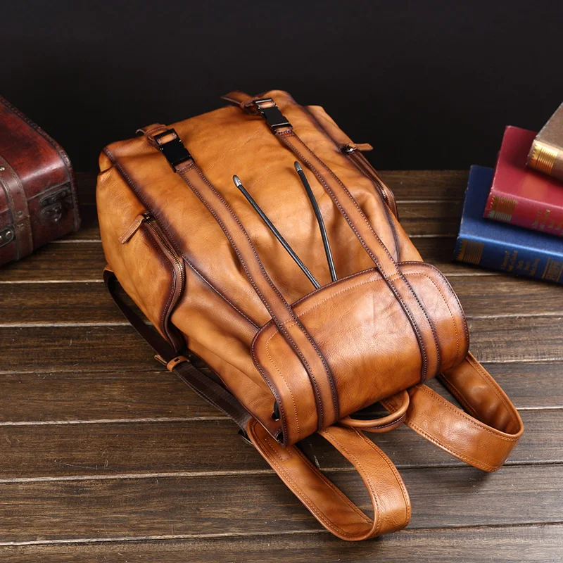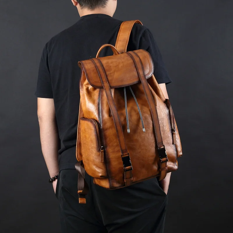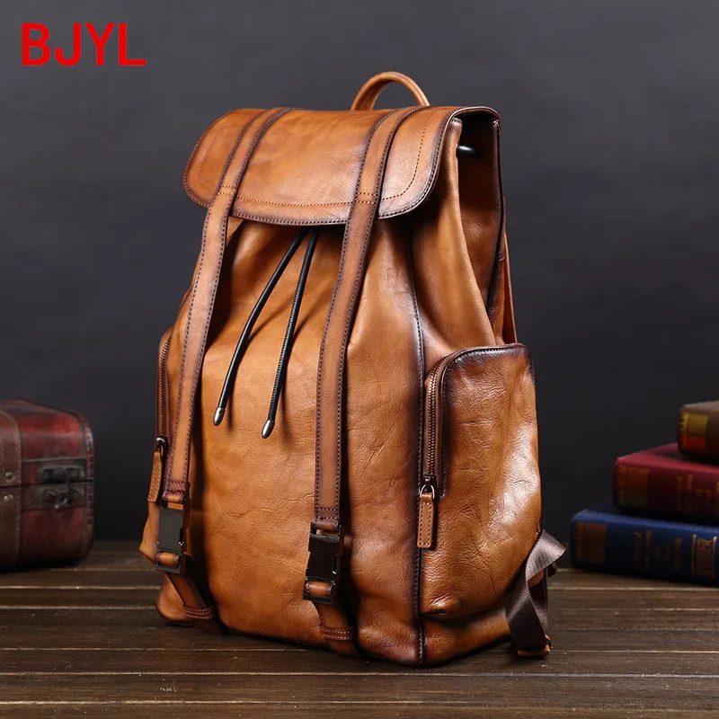 Home » backpack , hot product , travel » New New vintage leather men backpacks cowhide laptop bag full leather men's drawstring travel backpack
