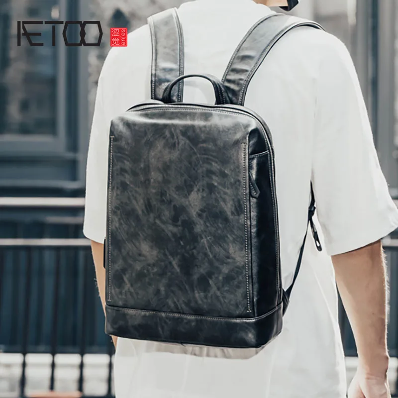 Home » backpack , hot product , travel » Limited AETOO Leather shoulder bag men's casual business backpack men's head leather travel computer bag