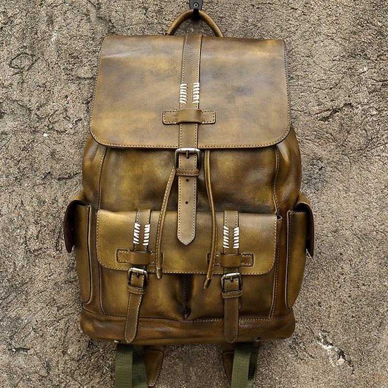 Discount Men's Backpack Military Style Travel Bag Luxury Mens Cow Leather backpack Large Capacity Retro Shou